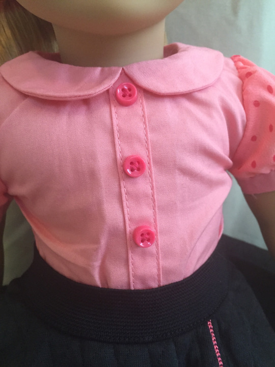 The shirt features four buttons but once the skirt is on, you should only see three. The buttons are a brighter pink than the rest of the shirt.